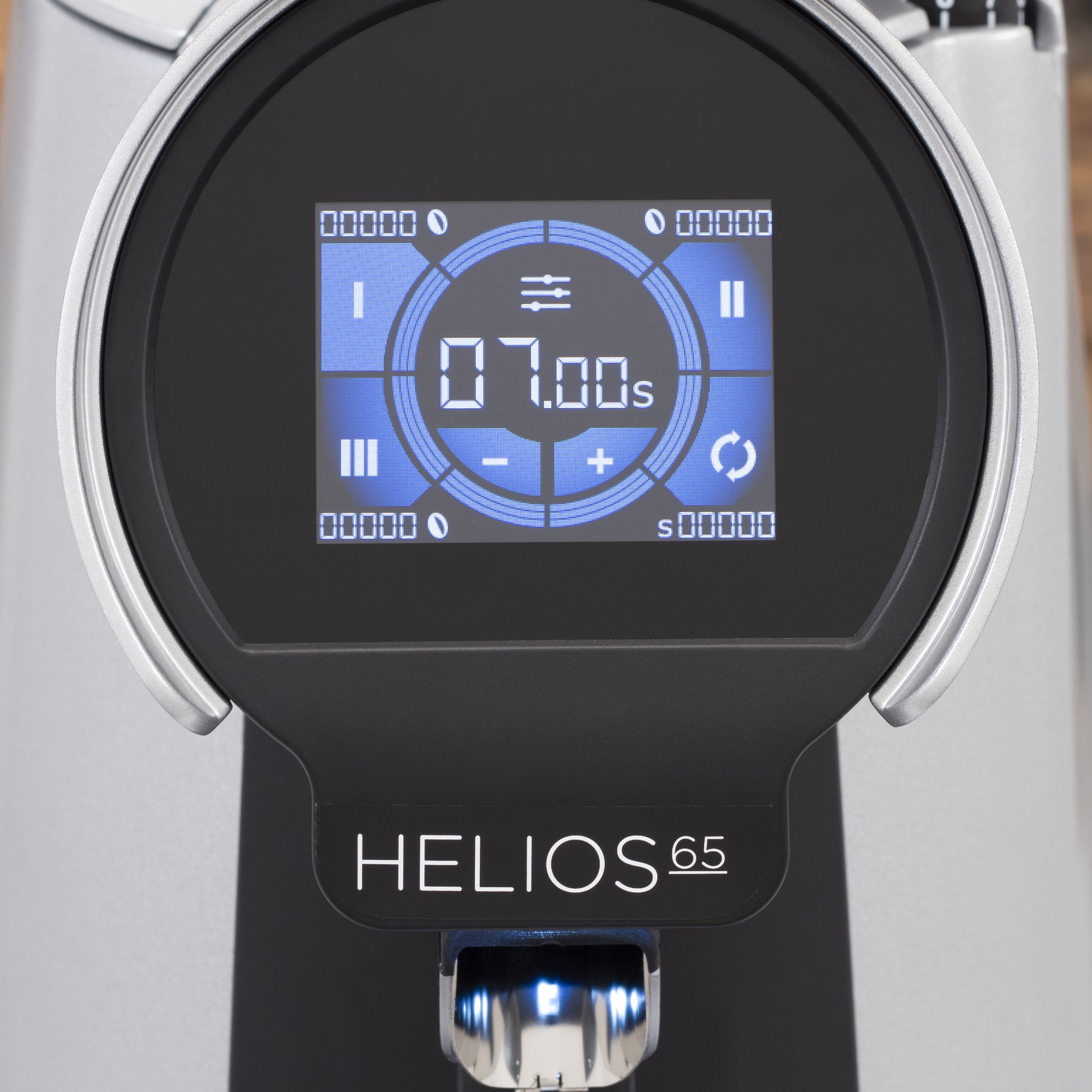 The vibrant touchscreen display makes a statement and offers 3 adjustable timed-grinding presets, as well as an option for manual grinding. Thanks to the touch controls, all adjustments and selections are easy to understand and come naturally. Inside the menus, you can tell the Helios 65 what type of burrs you have installed so that it can notify you when to change the burrs. You can select different colors for the menu as well for a personal touch.