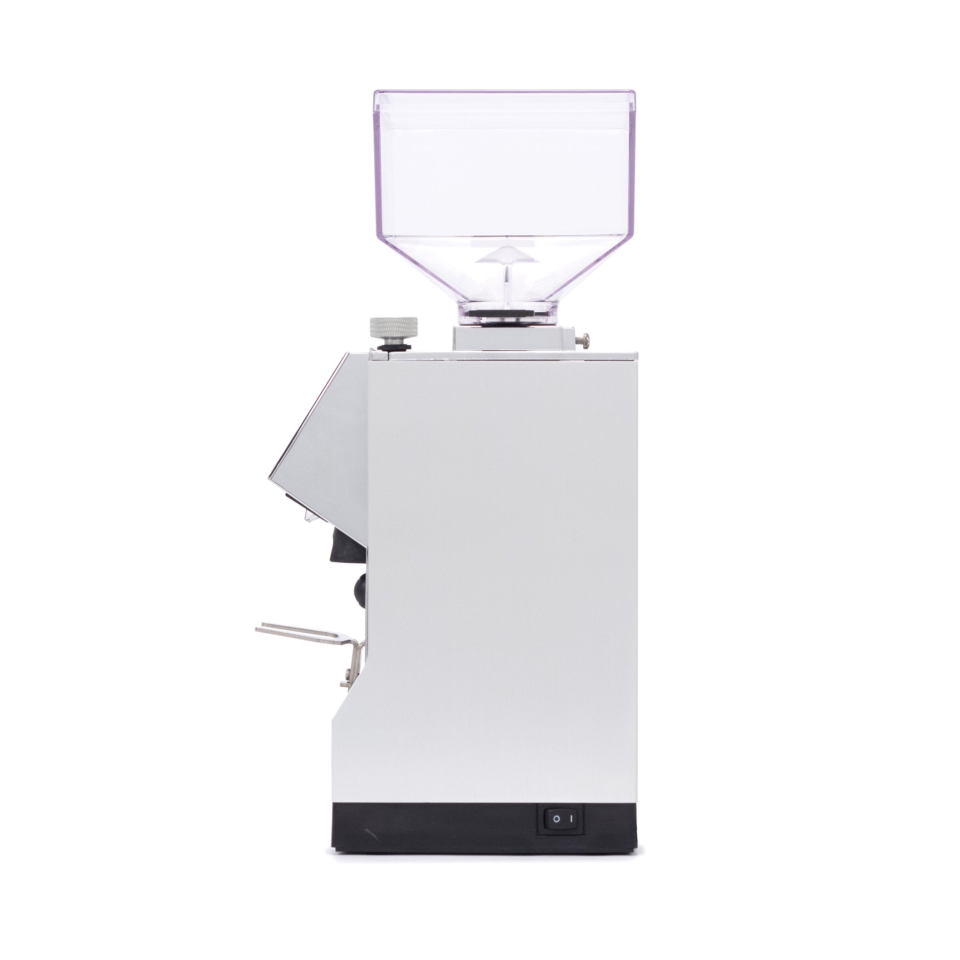 The Mignon Magnifico features an adjustable portafilter fork that can be raised or lowered. Depending on the height of your portafilter, the fork can be positioned to allow for hands free grinding, locking the portafilter head securely beneath the spouts.