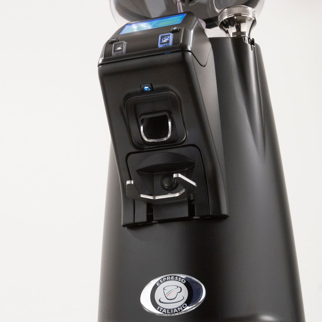 Eureka has a high attention to detail and innovation when it comes to their grinders, and the Olympus is no different. It’s as beautiful as it is functional. It features an anti-static and anti-clumping device, that eliminates electrostatic from the grounds, turning them as fluffy as they are consistent. The portaholder can be fitted to any portafilter with a small adjustment, and, to ensure those fluffy grounds always dispense into the center of your basket, you can adjust the coffee chute itself.