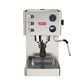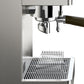 From a design standpoint the Victoria is wrapped in brushed steel housing and features metal button controls. When brewing, a backlight behind the pressure gauge illuminates to help make each extraction special. Thanks to a removable cup riser the Victoria can accommodate cups up to 4” tall.