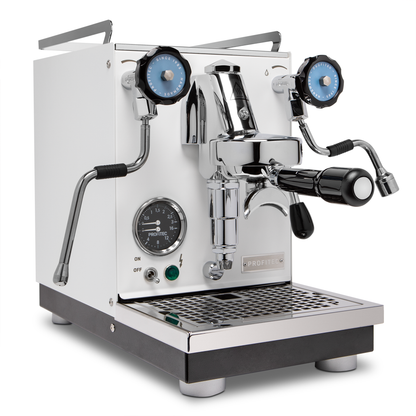 The Profitec Pro 400 is a small but mighty heat exchanger espresso machine that is perfect for kitchens of any size. As the most compact machine from Profitec’s lineup, you can save some space without sacrificing the features that you usually see on high-end espresso machines. From the bigger features like the E61 brew group down to the small details like interchangeable disclets with different colors to match your kitchen, Profitec has thought of it all in the design of the Pro 400.