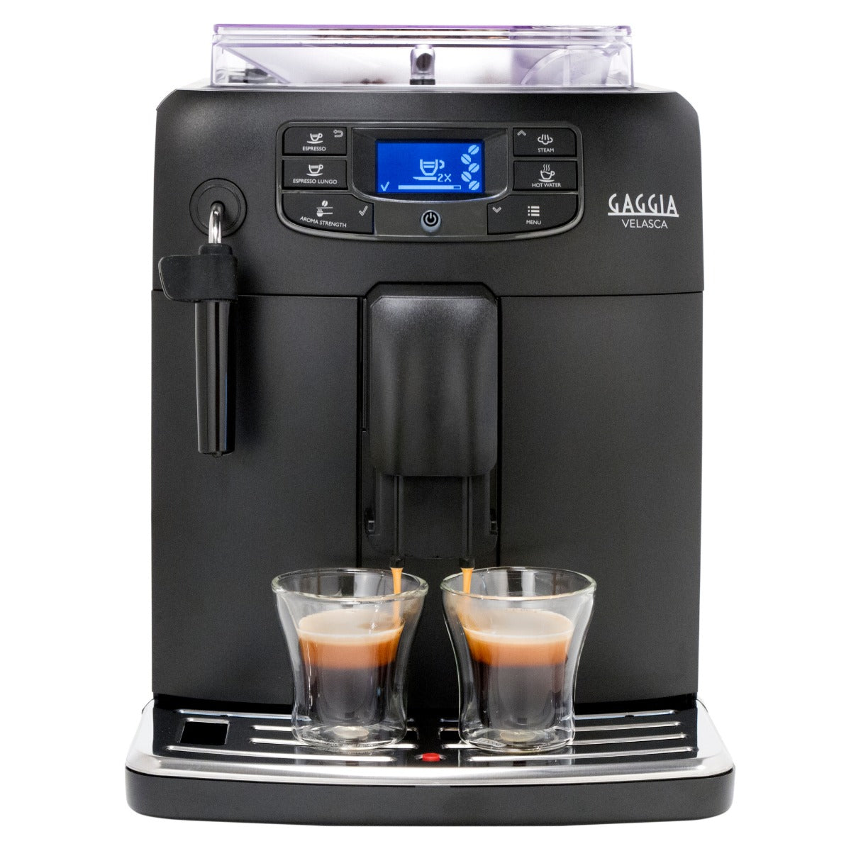 You're at the helm with dedicated buttons for espresso, espresso lungo, hot water, and steam. Robust ceramic burrs grind beans fresh for every drink you prepare and 5 adjustable strength settings and Gaggia's adapting system guarantee that the perfect amount of coffee is used every time. Should you prefer, there's also the option to fill the brew group with pre-ground coffee thanks to the bypass doser. For specialty milk drinks, the Pannarello steam wand makes it easy to texture milk for creamy cappuccinos and lattes thanks to an air intake hole that takes hassle out of frothing.