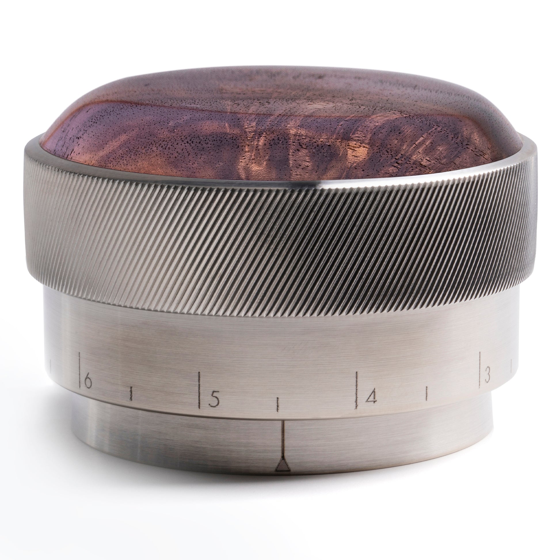 The New Levy Precision Espresso Tamping Tool in Curly Walnut is an American-made product developed in the Saint Anthony Industries workshop. Meaning, you can expect reliability and professional wood craftsmanship with each inlaid hardwood. You will also find that each New Levy Precision Espresso Tamping Tool is unique, with variations of tones and grain patterns.