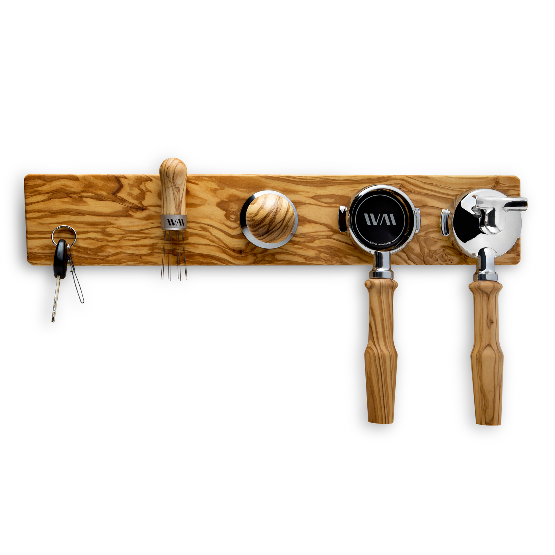 Keep every espresso accessory in arm's reach with the Hangup from Wiedemann. Simply hang it on your wall via the included screws or adhesive strips and use its powerful internal magnets to store up to five distinct espresso accessories—from tampers, to brushes, to portafilters—in style.